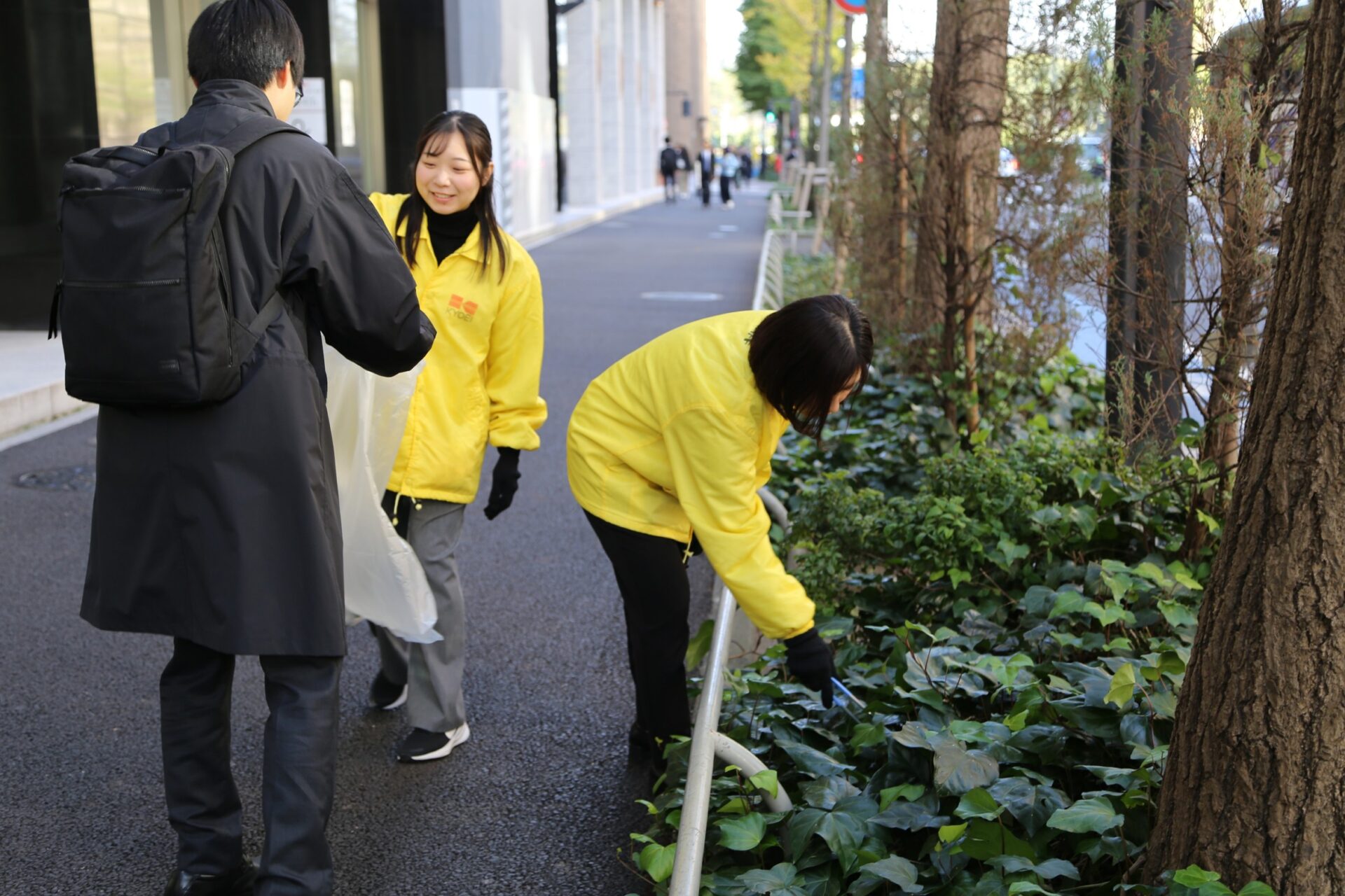 2025年11月7日も、朝7時45分からクライアント職員の皆さまや周辺企業の方々とグループを組み、丸の内仲通周辺のごみ拾いを行いました。